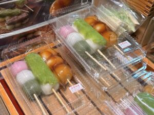 井筒屋創業90周年記念特別商品◎「十輪寺串だんご(春の彩)」は、みたらし・三色だんご(こしあん入)・枝豆あんの3種セット(各1本入751円) 。一足早く春の気分になれちゃうひと品💕