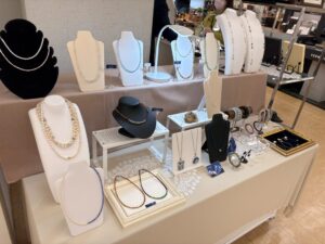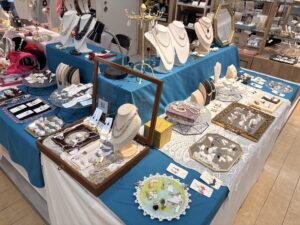 熊本在住の作家自ら世界各地を巡り集めた天然石をつかった、ネックレスやリングが並びます💍✨色合いが一つひとつ違って、見ているだけでも楽しい😊