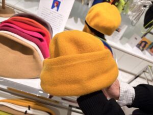 こちらは、ドイツのブリュールを拠点とする高級ニットブランド〈kopka〉の帽子(8,250円)。気分次第で被り方を自由自在に変えられます😉