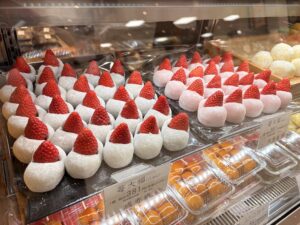 季節限定の「苺大福」(381円)も見逃せません🍓✨写真左がこしあん、右が白あんですが、どちらもおいしそう😍