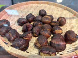 看板商品の「焼き栗」(200g 1,080円/420g 2,160円/650g 3,240円/900g 4,320円)は、良質な栗を厳選し、独自製法でていねいに焼き上げたもの。皮がむきやすく、ほくっと柔らかな食感と自然な甘みが楽しめます😋
