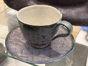 今回の注目は、こちらのマグカップ&ソーサ―(29,700円)☕✨窯変によって生まれた、この紫や青の色合いは本当に珍しいそうです。日常のひとときが特別になりそう😍