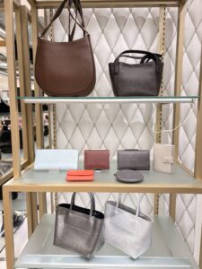 スクエア型のトートバッグ(写真手前、7,480円)など、カラーバリエーションも豊富です✨