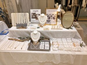 福岡県北九州市近郊・京築地域の自然を生かしたグルメやハンドメイド雑貨が集まる〈京築マルシェ〉が開催中✨ 館内にはアクセサリー、ウェア、バッグ、財布、器など、これから迎える春の装いや暮らしを彩るアイテムがそろいました🌷