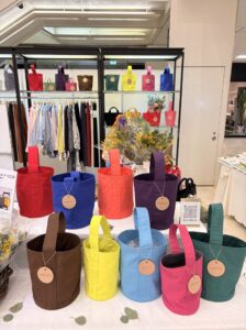 8号帆布から11号帆布までを使用したトートバッグや布小物がそろいます👜💛日常使いしやすいサイズ感とシンプルなデザインで、丈夫に仕上げられているのが魅力。丸みがあるトートバッグ(写真手前、小5,500円/大6,270円)や、