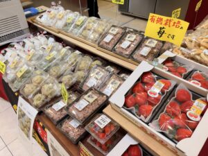 築上町の農業を支援している〈アルク農業サービス〉。自然豊かな築上郡農産部で加工品を製造しています。あんこ餅やよもぎ餅、赤飯、有機栽培いちごなどが並びます🍓💛