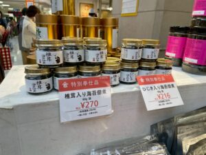 「椎茸入り海苔佃煮」(写真左、60g詰 270円)、「ひじき入り海苔佃煮」(写真左、60g詰 216円)は、こちらにある分だけの限定商品なので、気になる方はお早めに🙌💗