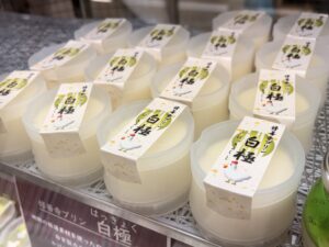 一番人気は「白極(はっきょく)」(417円)。伊豆のブランド卵「鶏愛卵土(ニワトリアイランド)」を使った真っ白なプリンです🤍しっかりとした食感と口の中でほどけるなめらかな味わいを楽しめます😋