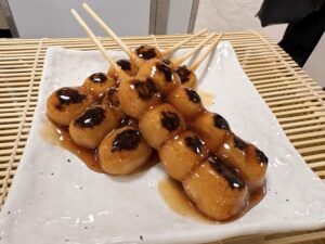 一番人気の「みたらしだんご」(5本入650円)。小粒の京だんごを香ばしく焼き上げたひと品🔥秘伝のタレは甘すぎず辛すぎず、上品でクセになる味わいです😋