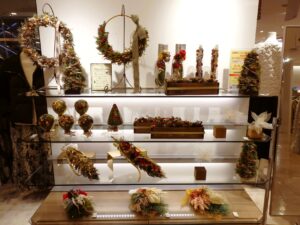アーティフィシャルフラワーとプリザーブドフラワーを織り交ぜた、おしゃれなクリスマス飾りも🎄