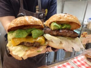 ご覧ください、このボリューム!大江戸展限定の「ハニーマスタードアボカドバーガー」をはじめ、国産牛100%の“まるでステーキ”な肉感のまさに極上ハンバーガーが揃っています🍔