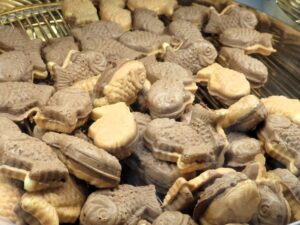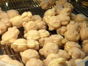 ほんのり甘い生地にクリームやチーズを入れて、じっくり焼いた一口サイズの焼きたて菓子🐼