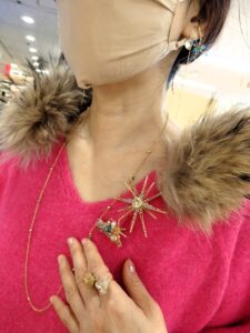 クラシカルを意識したコスチュームジュエリーの〈薫乃園〉とコラボレーションした作品👍