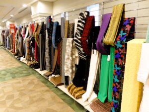 異なる柄をつなぎ合わせた配色がキレイな大判のロングマフラー💛すべて1点ものです⤴