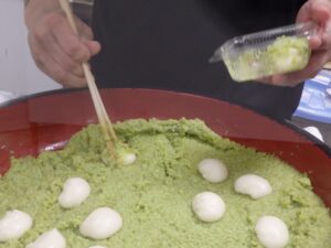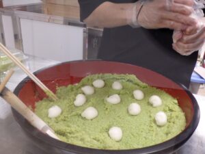 着色料などは使用せず素材の持つ旨味や色合いを生かした、東北名物「ずんだ餅」の出来上がり💚