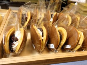米粉を使ったもちふわ食感の皮で、あんとホイップをはさんだ至福のどら焼き「あんホイップ」💚「芋ホイップ」「珈琲ホイップ」もあります👍